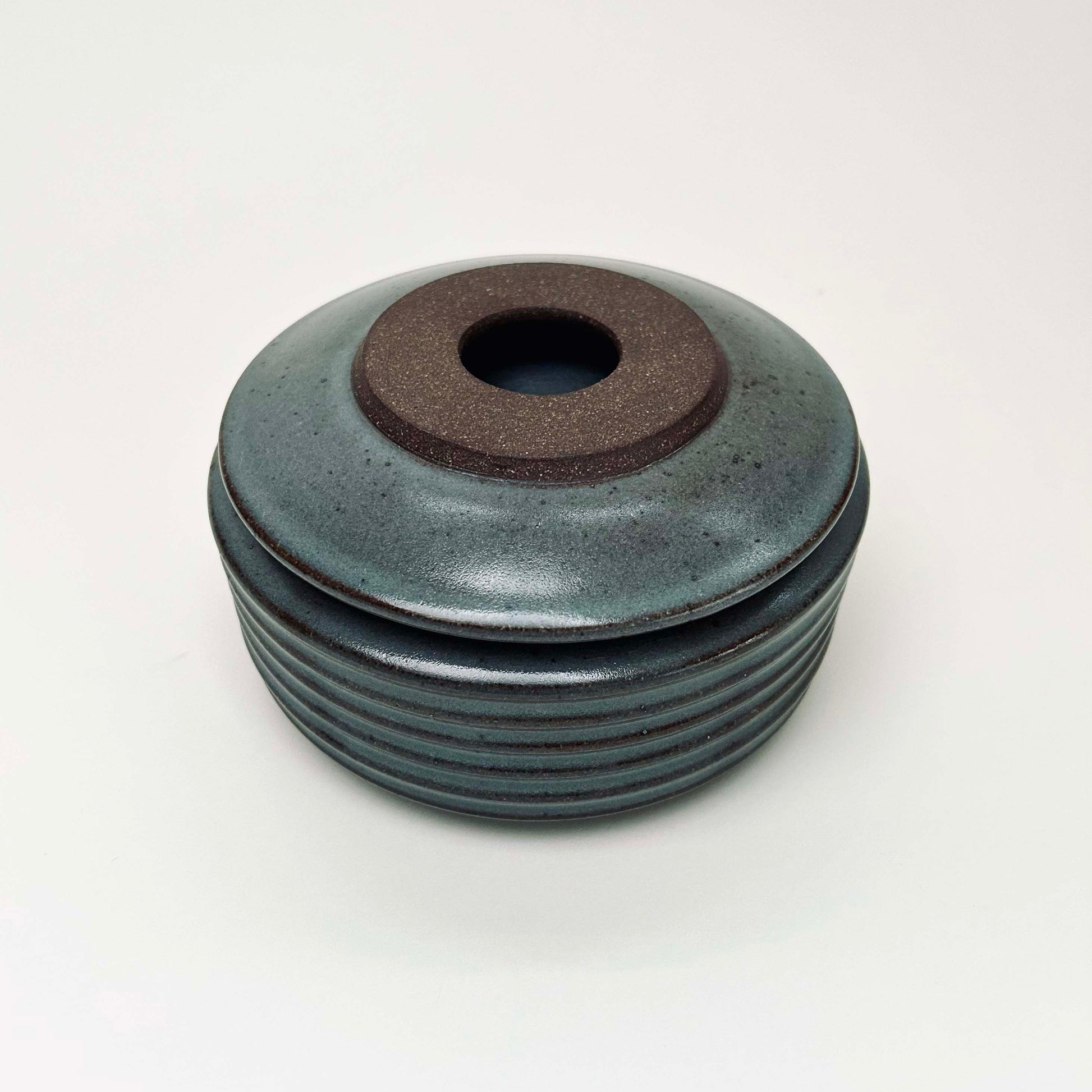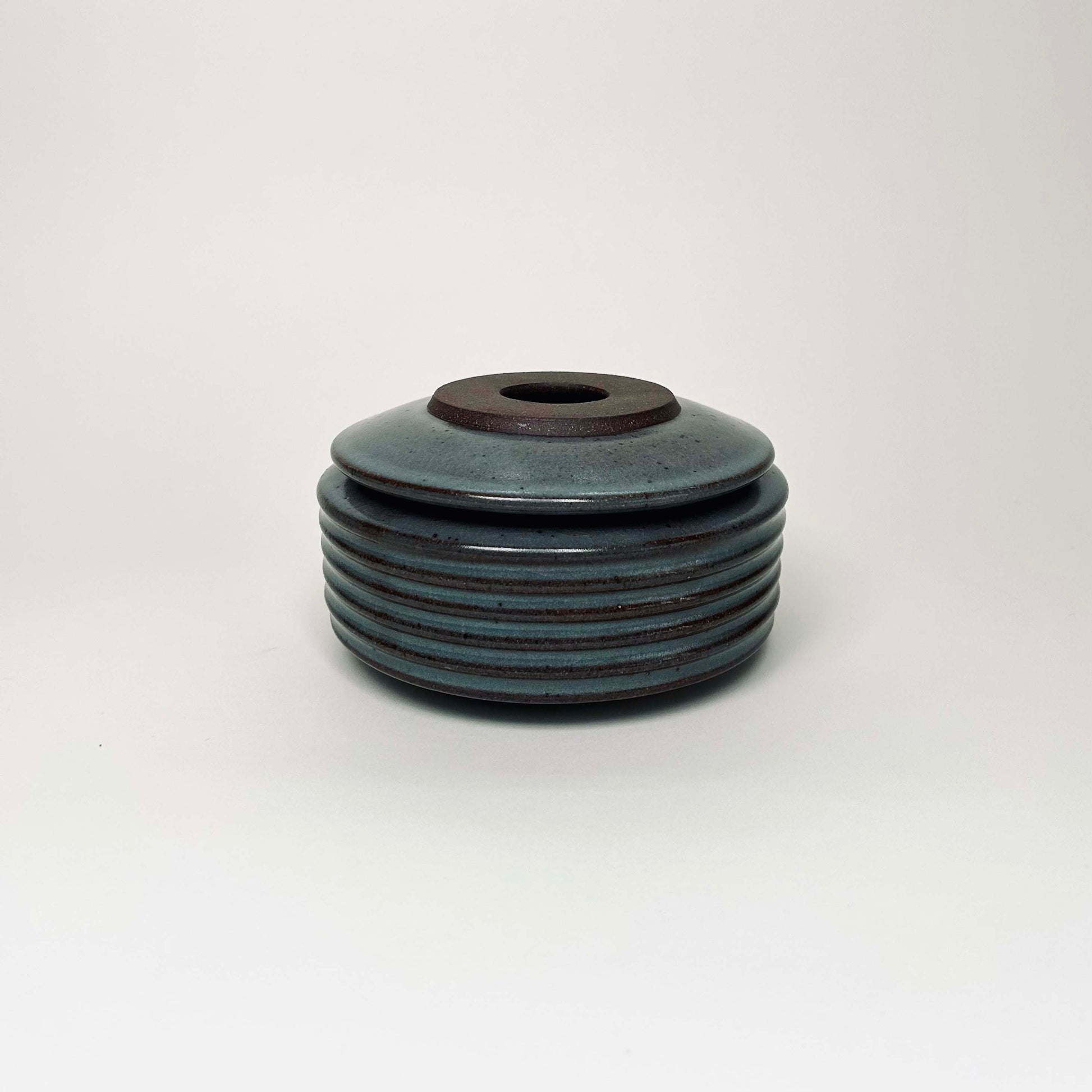 Hand-thrown and high-fired, this ribbed lidded vessel incorporates glazed and unglazed finishes with a unique lid design that provides easy access for storing and containing. The result is a honed timeless aesthetic that will bring a bit of beauty to any space.