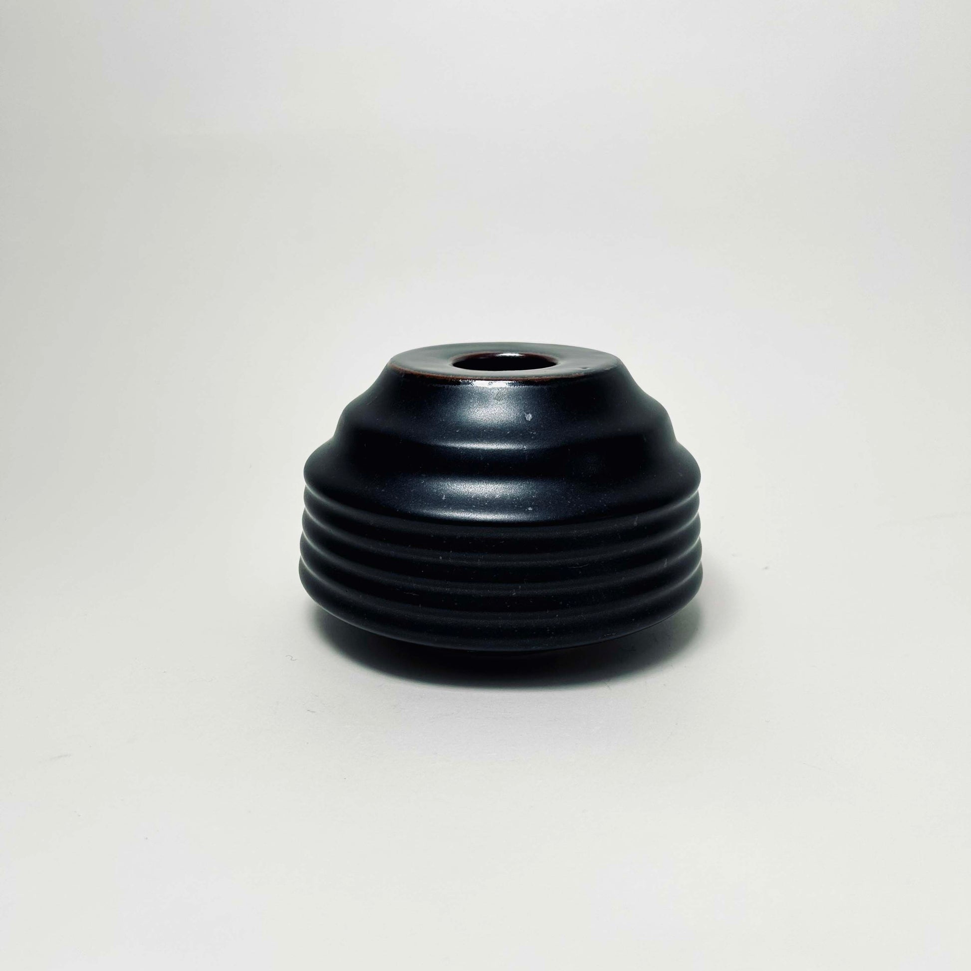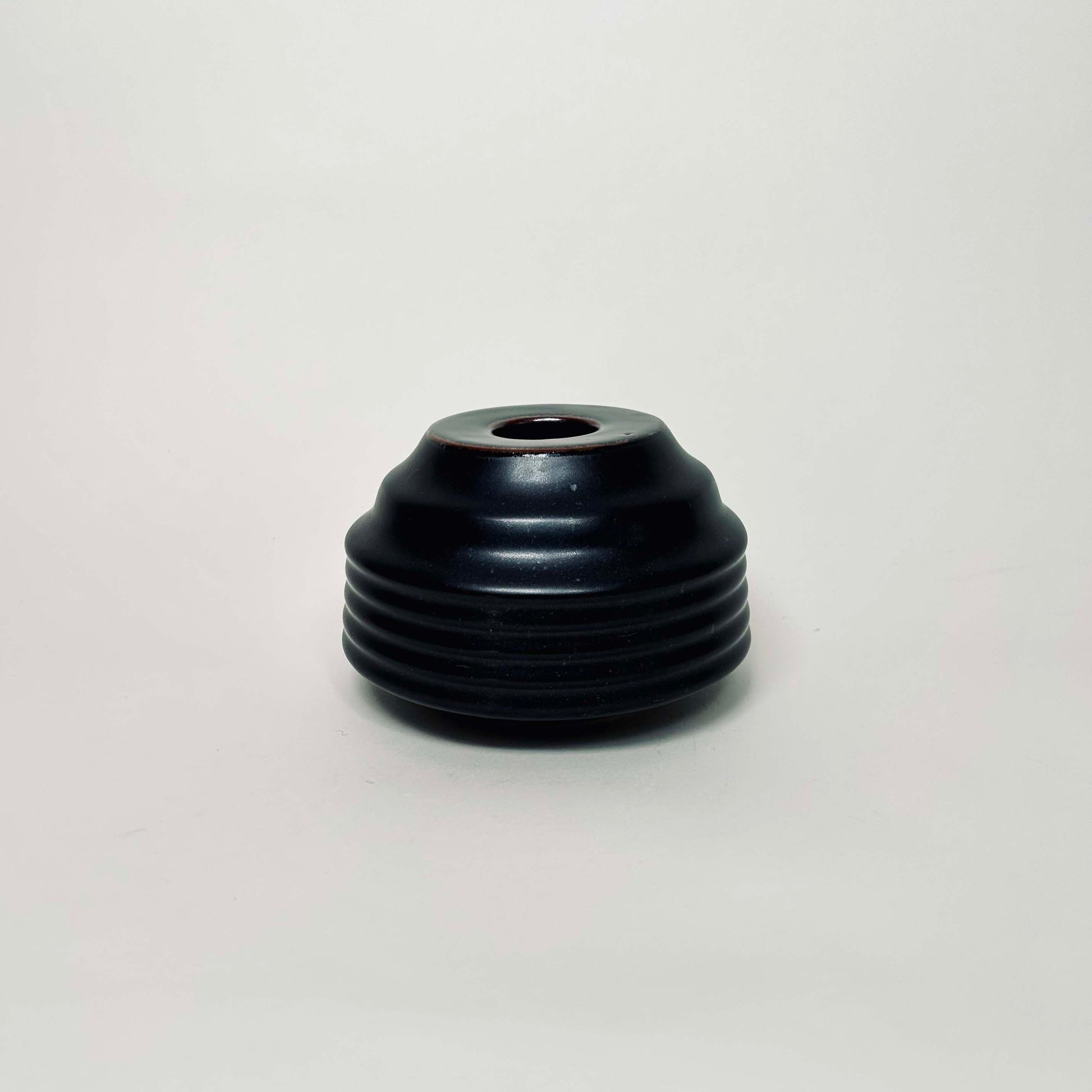 Hand-thrown and high-fired, this ribbed vase design leverages both a satin black glaze in combination with Oil Spot layered on an angular form, creating a timeless honed aesthetic.