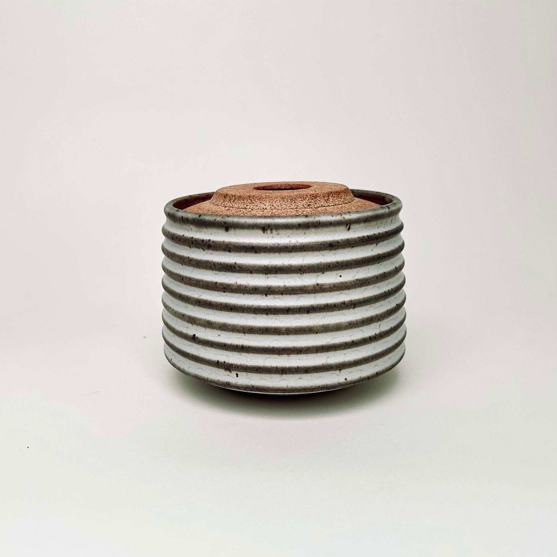 Tapered Ribbed Lidded Vessel in Mocha Cream